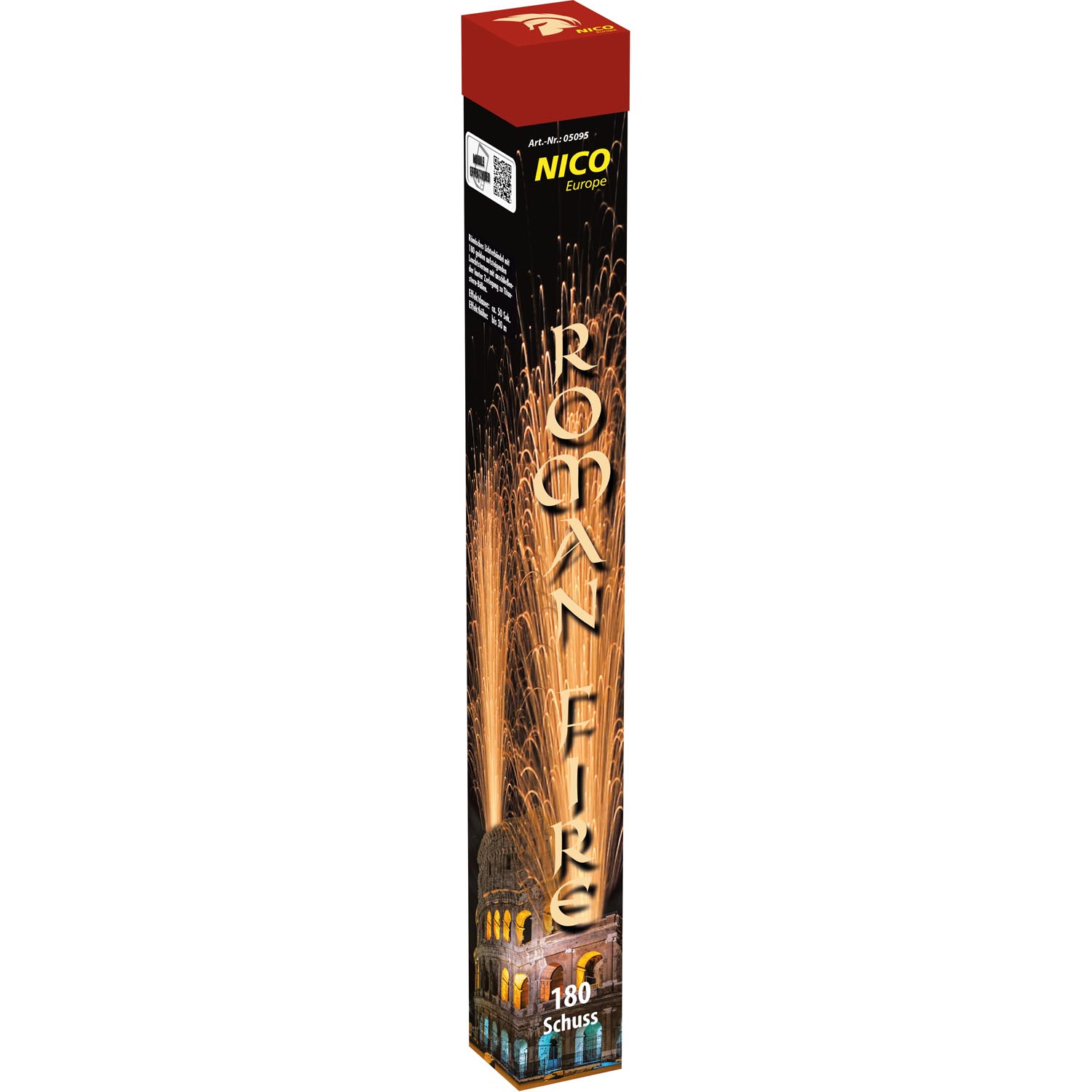 Mit dem römischen Lichterbündel ROMAN FIRE können Sie sich auf 180 golden aufsteigende Leuchtsterne mit anschließend lauter Zerlegung zu Titanstern-Bällen freuen.